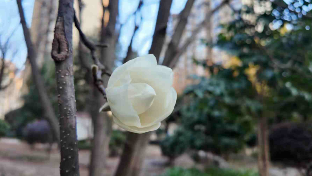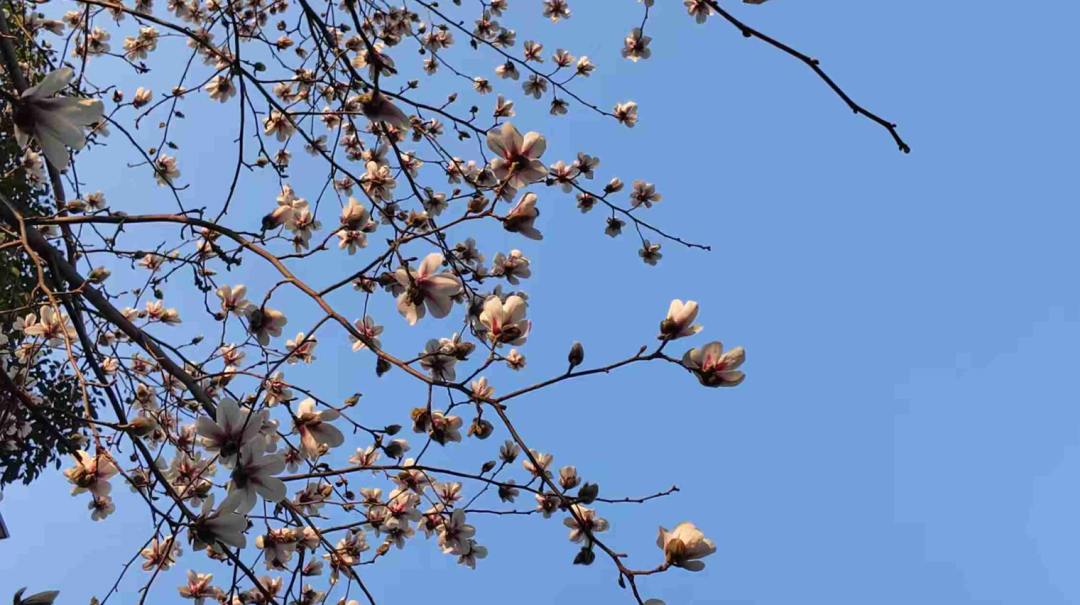 最先唤醒清晨的,是枝头的玉兰。光秃秃的枝丫上,一朵朵白玉兰静静伫立,花瓣温润如玉,藏着未说尽的温柔。风一掠过,清清淡淡的香气便漫了开来,不浓不烈,却干净得沁人心脾。不远处的另一株,花开得更盛,粉白相间,在蓝天底下轻轻摇曳。几只小鸟扑棱着翅膀落在枝头,啾啾几声清脆鸣叫,像是在和花朵轻声对话,把早春的宁静,一下子揉得柔软生动。