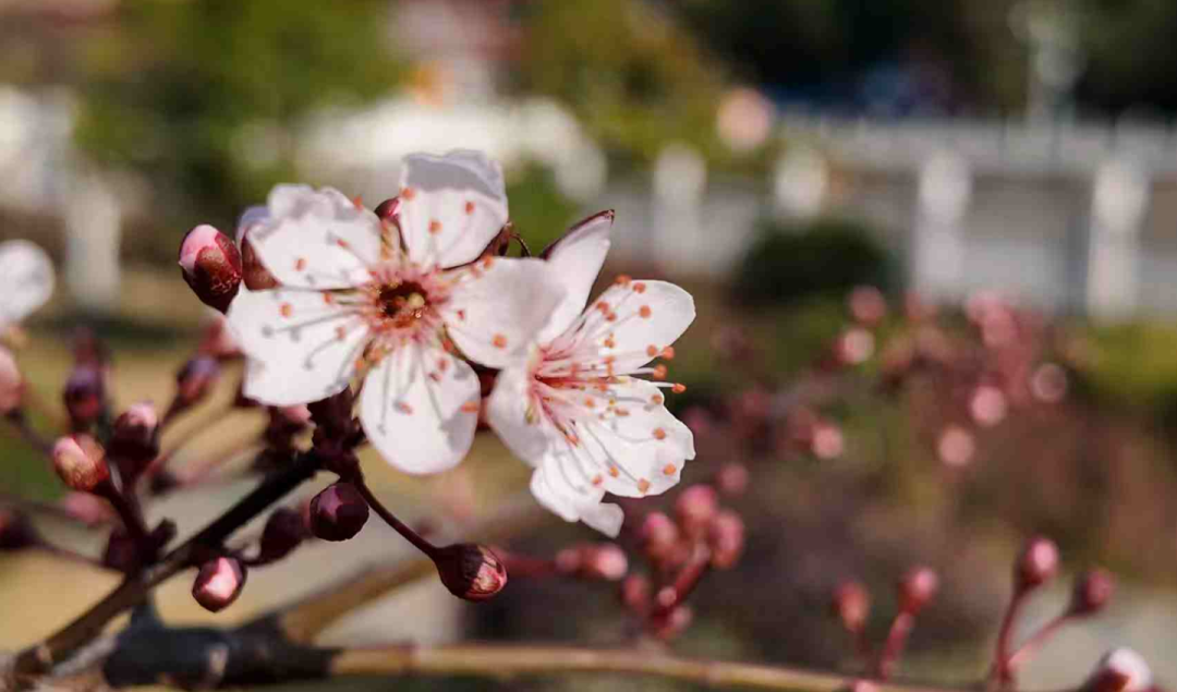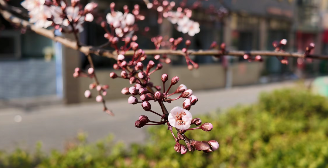 紫叶李也悄悄开了。细碎的花苞缀满枝条,像撒下一把温柔的星光。偶有几朵先绽放,薄薄的花瓣托着嫩黄的花蕊,在阳光下轻轻颤动。甜而不腻的花香随风飘散,引得蜂蝶轻舞,鸟儿也偏爱落在这柔软的花枝间,一声接一声地啼叫。花香绕着枝头,鸟鸣伴着风,走在树下的人,连脚步都不自觉慢下来,一呼一吸间,全是春天的温柔。