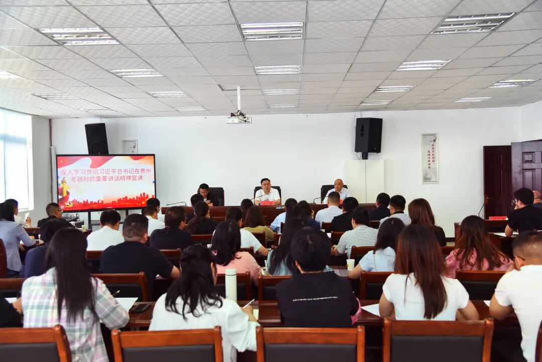 吴伟梳理回顾了习近平总书记历次考察贵州情况,围绕准确全面领会讲话要求、推动精神入脑入心、走深走实并转化为实践成效等方面,对讲话精神进行了剖析。他强调,要深入学习贯彻习近平总书记在贵州考察时的重要讲话精神,从中汲取感恩奋进的精神力量、担当作为的实践力量、狠抓落实的行动力量,以“时时放心不下”的责任感、“事事落实到位”的执行力,将优化营商环境、推进高质量发展、深化作风建设贯穿于市场监管工作全过程,以“钉钉子”精神狠抓落实,用实绩实效和人民群众的满意度来检验工作成效。