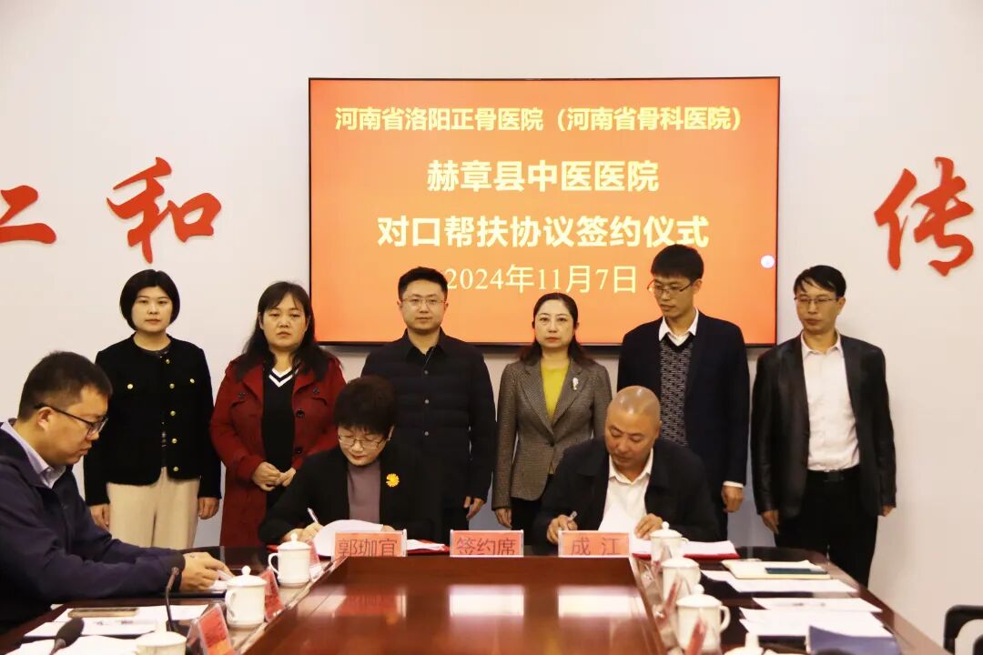 会议签署了《河南省洛阳正骨医院(河南省骨科医院)“地域+领域”组团式帮扶赫章县中医医院对口帮扶协议》,平乐郭氏正骨流派传承工作室为赫章县中医医院工作站授牌。